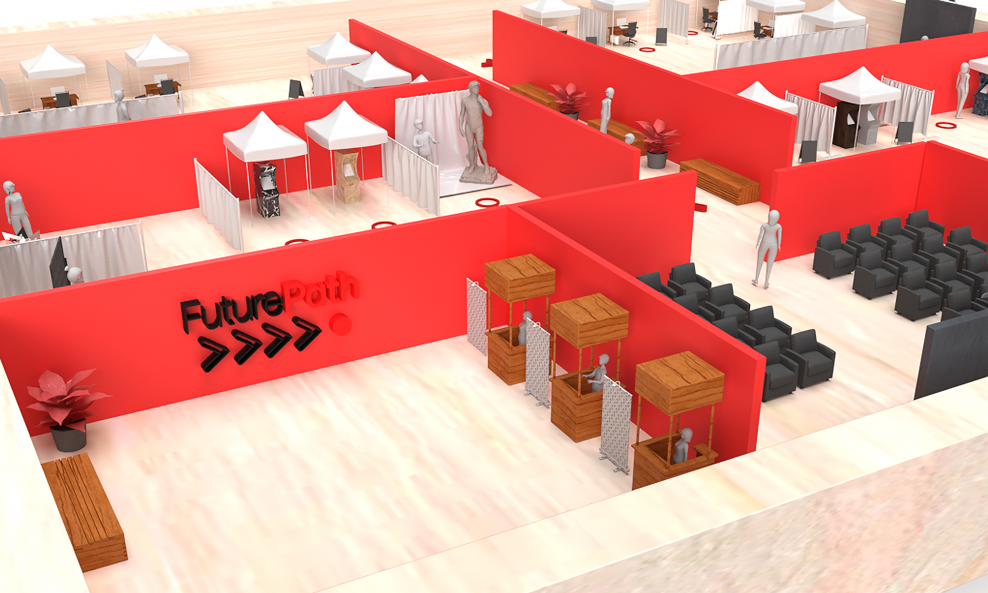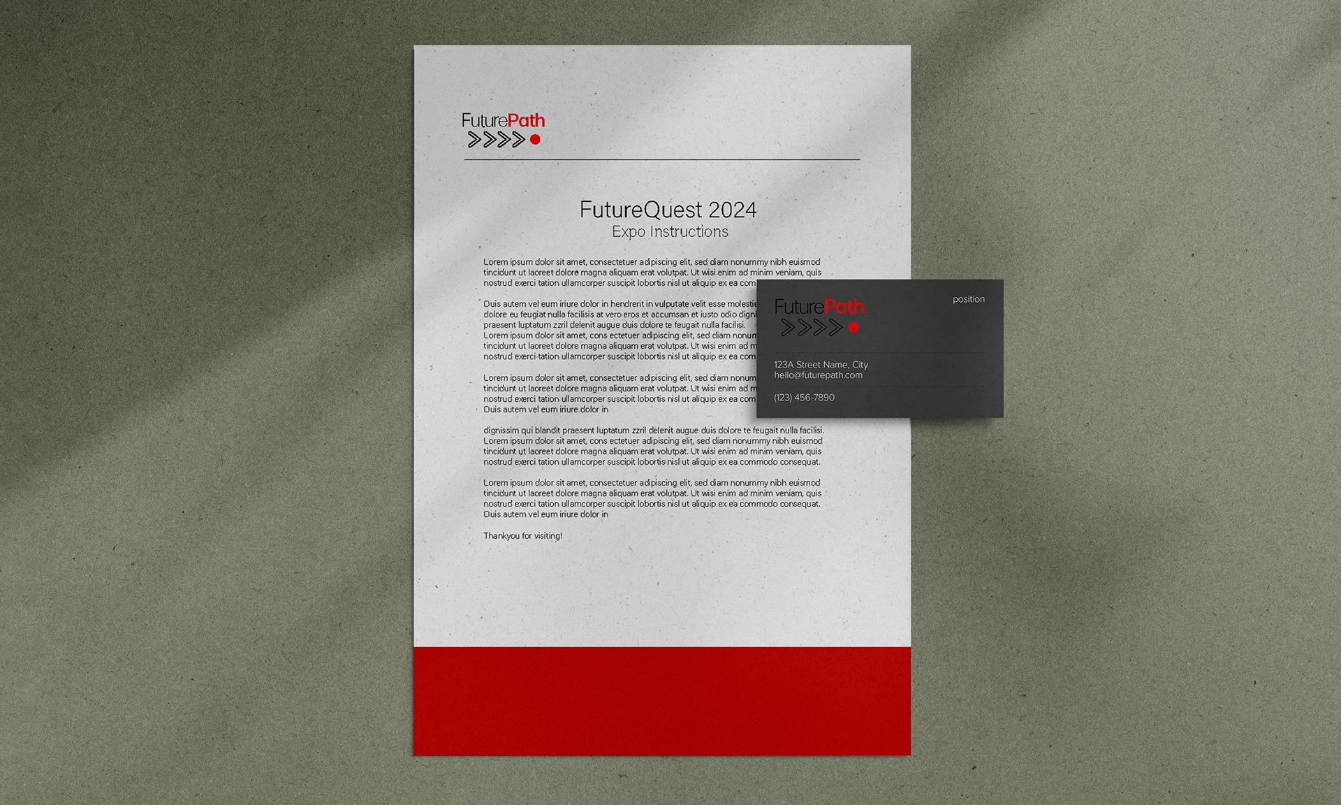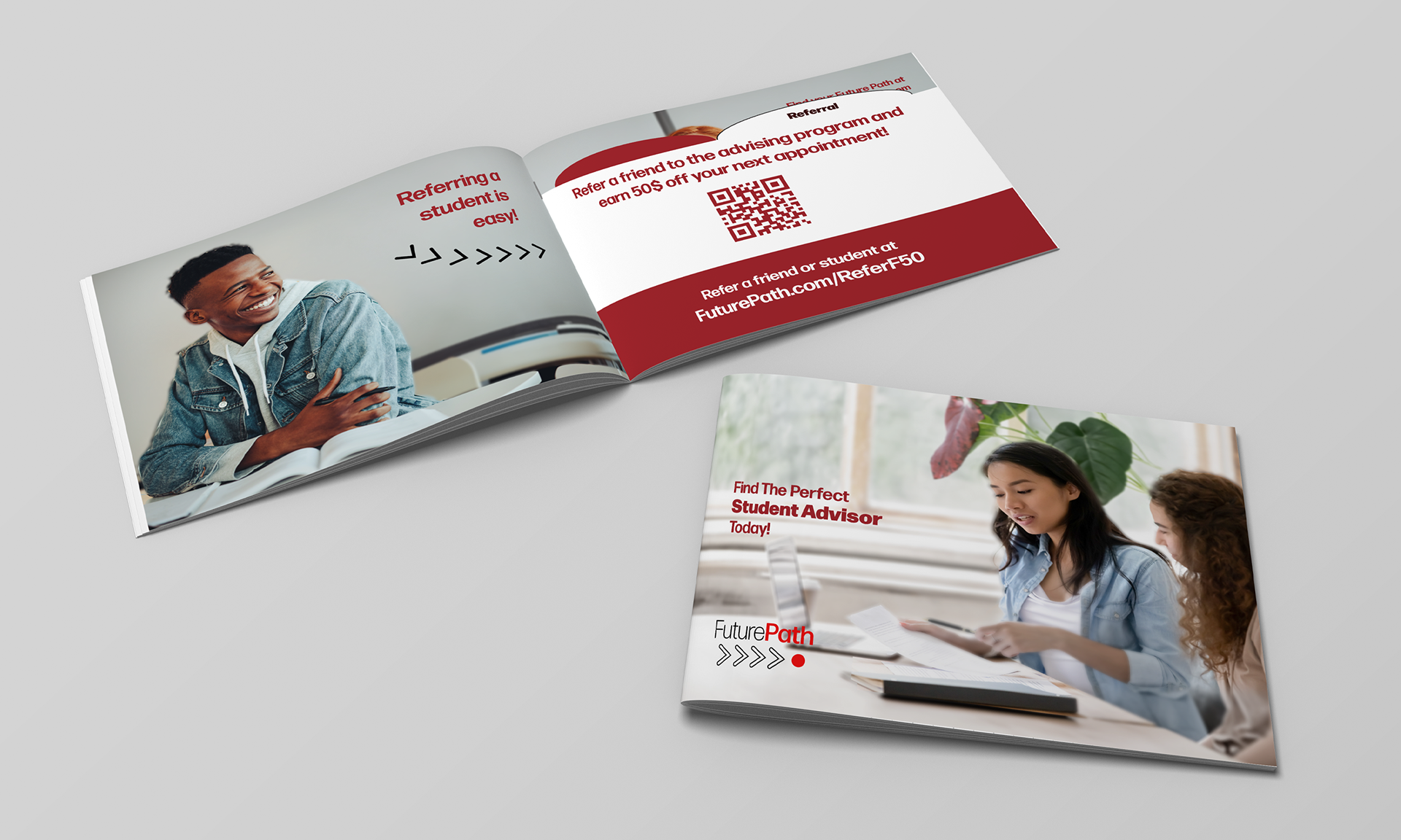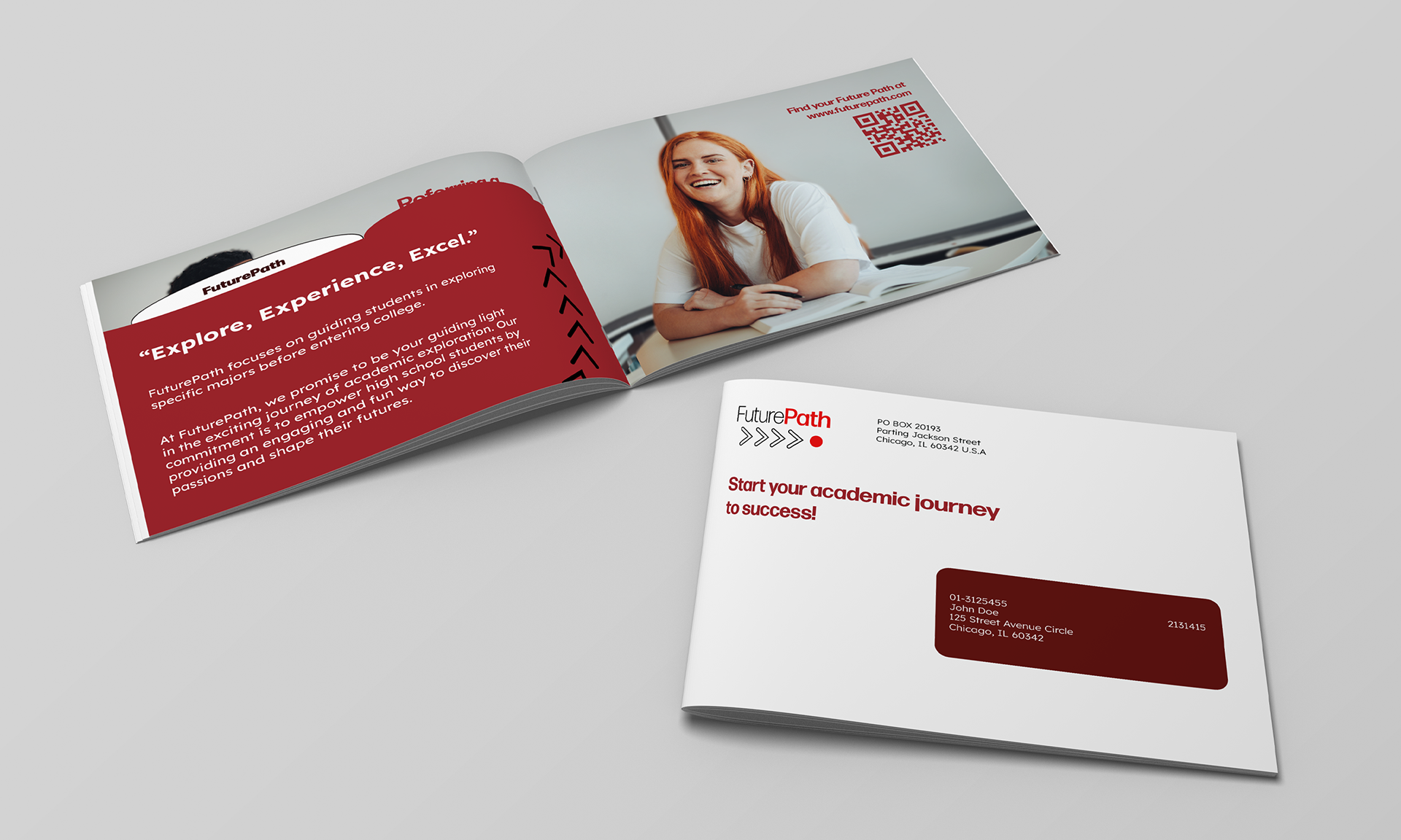 The FuturePath FutureQuest event inspired high school students through interactive experiences to explore academic passions. The project included custom branding, logo design, and branded materials like folders and notebooks. UI/UX design for mobile and desktop ensured a seamless experience, combining physical and digital branding.