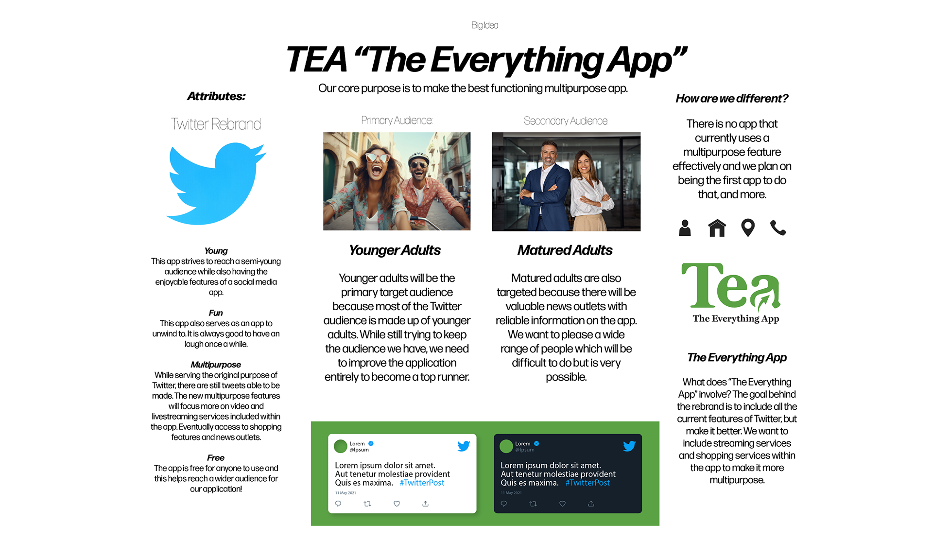Tea "The Everything App" combines a dynamic social experience for youth with reliable news content for adults. Designed for mobile and desktop, the app integrates physical products like signature tea bags with a seamless digital experience.